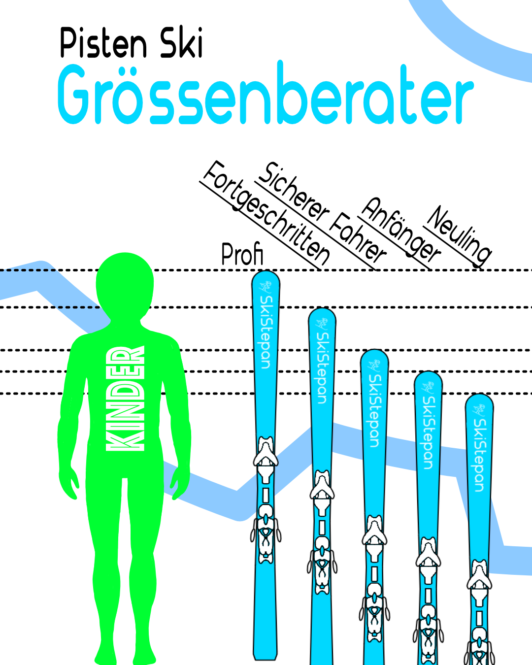 Schau dir unsere Grössenhilfe an, um die passende Skilänge zu wählen
